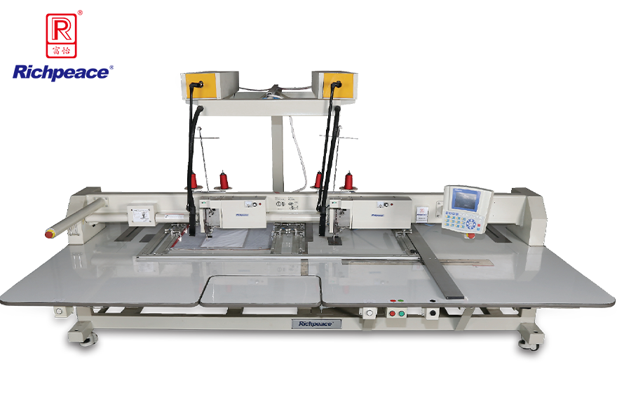 1、全自動模板縫紉機能夠?qū)崿F(xiàn)多頭大面積1500X1000縫紉