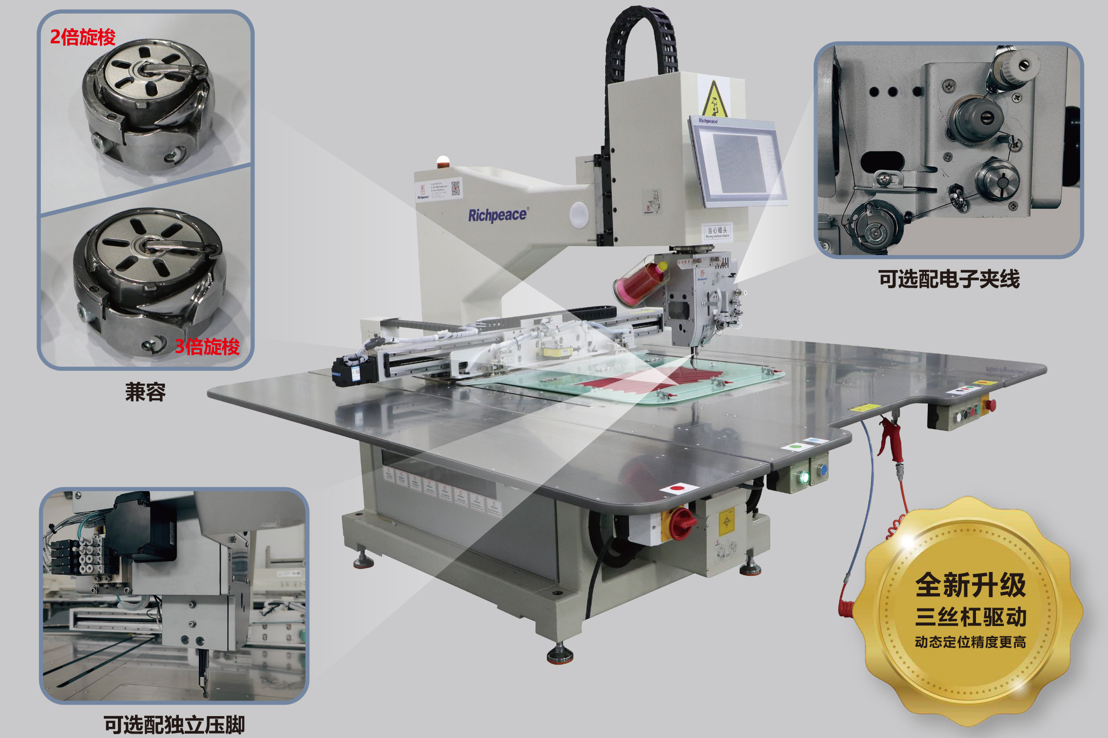 01、全新升級三絲杠驅(qū)動,動態(tài)定位精度更高。