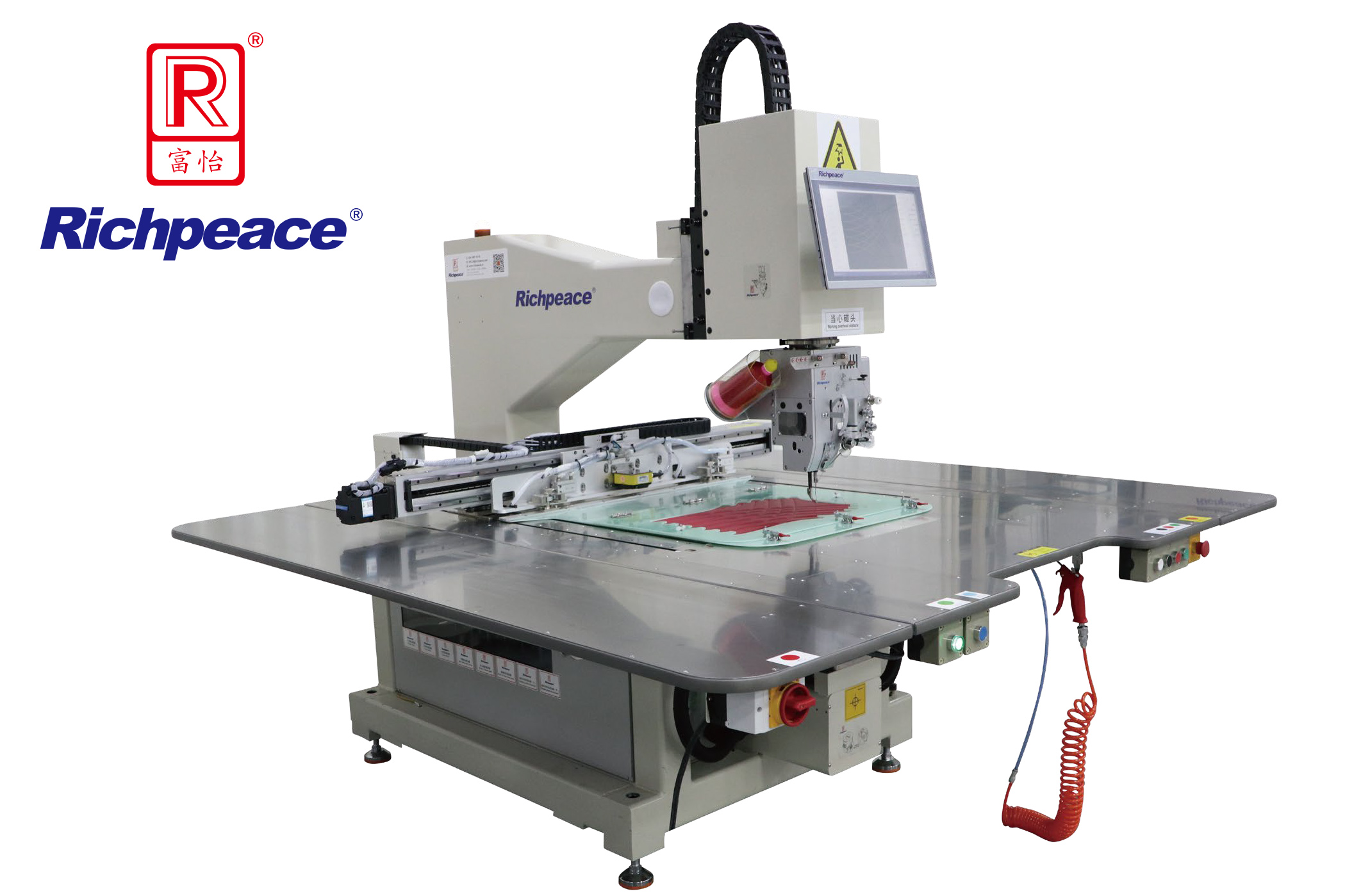 08、采用伺服電機(jī)驅(qū)動龍門同驅(qū)技術(shù),使用精度直線導(dǎo)軌傳動,科學(xué)分 布框架驅(qū)動動力,讓框架運(yùn)動響應(yīng)更高,花樣精度更高。