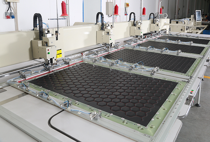 11、自動縫框:三面固定,自動夾緊,保證縫紉過程中平穩無皺,走位準確。