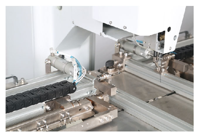 6、自主研發(fā)的高精度夾具可實(shí)現(xiàn)對布料的精確地定位及固定,保證縫紉品質(zhì)。