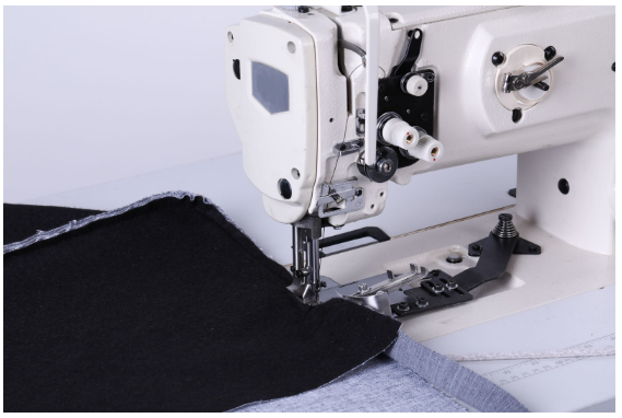 4.交替壓腳、機針和送布牙三部分同時送料,構成穩定高效的綜合送料系統,確保在縫制 厚料或復雜結構縫料時送料平順,上下層縫料不易產生移位。