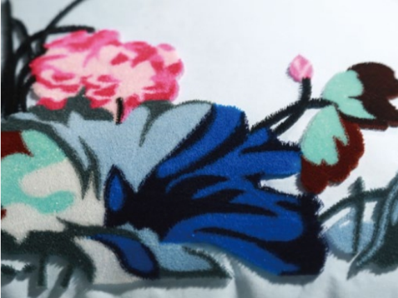 11、植絨成品線絨平滑、均勻。繡線穿透織物緊勾固定,經(jīng)過背膠處理后牢固可靠。